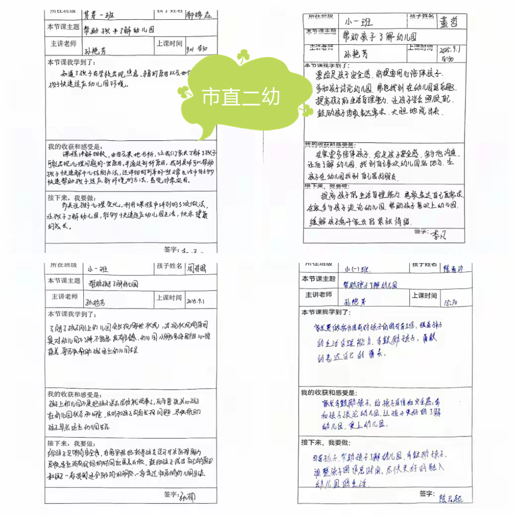 小班是幼儿从家庭步入集体生活的转折点,孩子们难免对陌生的幼儿园感到不安与焦虑,哭闹、抗拒入园的情况时有发生。为帮助孩子们顺利适应集体生活,缓解内心的焦虑情绪,本月家长学校课程围绕《帮助孩子了解幼儿园》这一主题进行了讲解。家长们认真听课学习。